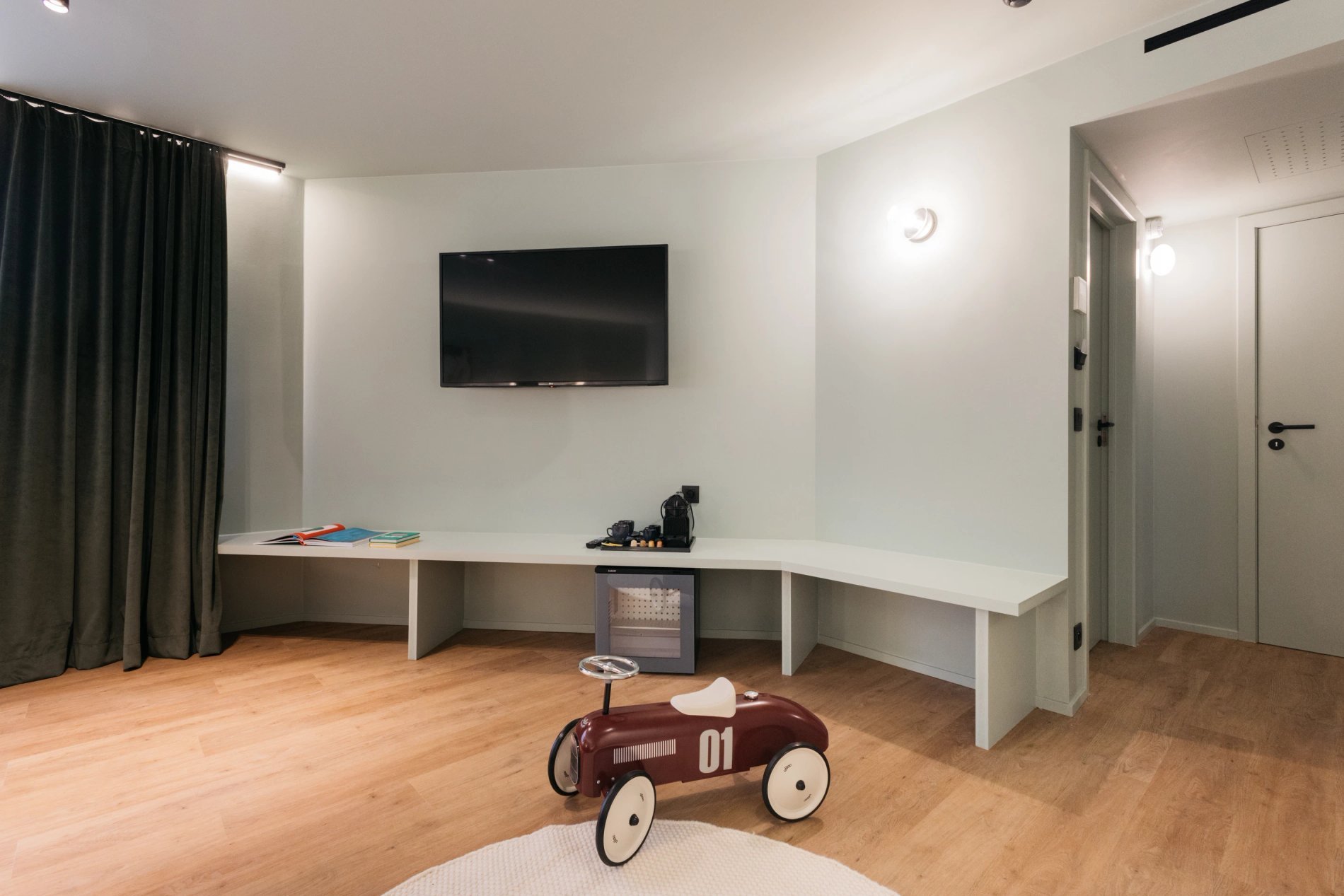 Enjoy a perfect blend of style, comfort, and practicality in our Urban Room, thoughtfully designed for families. Spanning 30 sq.m., this inviting space accommodates 3-5 guests, featuring a king-size bed and built-in wall bunk beds for children — a fun and space-saving solution the whole family will love. Stay connected with complimentary Wi-Fi and enjoy in-room entertainment on a flat-screen smart TV. For added comfort, an espresso machine and a selection of teas are provided, ideal for a relaxing break after a day of exploring.